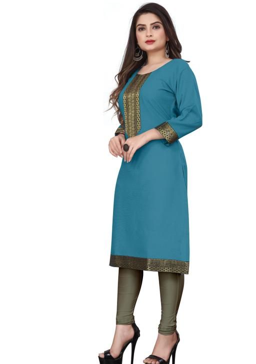 Name: Desigener Kurtis New Collection Plain Cotton Golden Lace Border Pattern Casual Kurta for Girls & Women