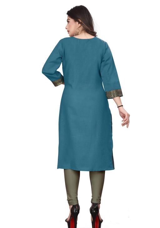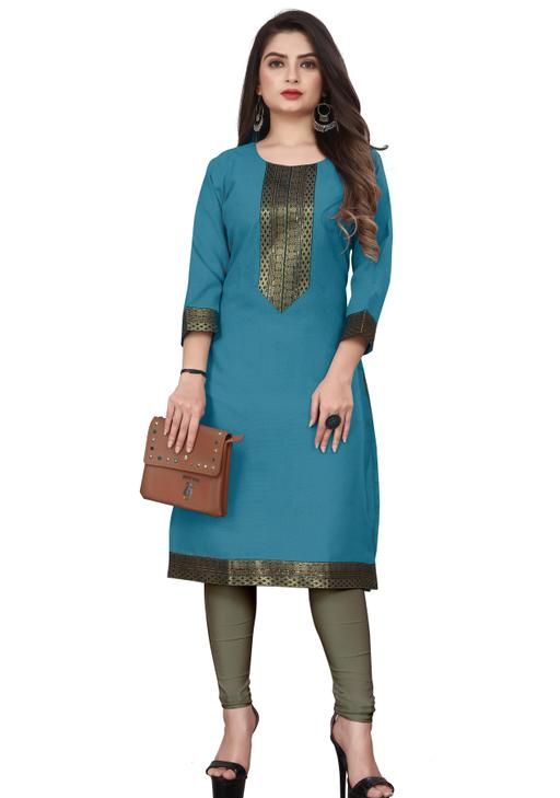 Premium quality solid cotton fabrics, Golden zari lace border, 3/4 type regular sleeves, Round neck design with above knee 40 inches length, Suitable to wear in party, function, office, work, college, ceremony or regular wear, Plus sizes available small to 5x-large, Have available many colors in this design, Note: Brand size chart available in description, Note: It’s a one piece kurti / dress only (not with leggings or pant), Note: Product color may be vary because of lightning source while photo shooting or your device screen settings. VISVA DESIGNER brings to you these beautiful kurtis which are made from cotton fabric available in solid colour with golden black lace border with straight style. This kurtas has been designed keeping in mind the trends in contemporary fashion.