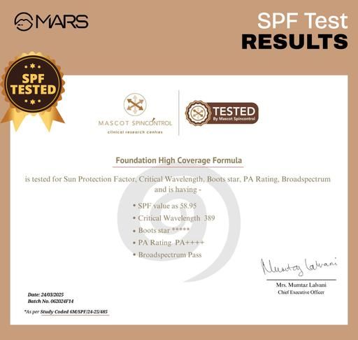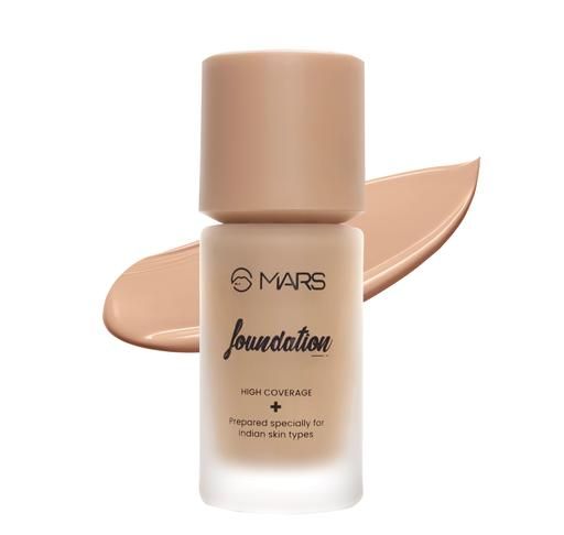 CONVENIENT PUMP DISPENSER-The foundation comes with a practical pump dispenser that allows for precise and mess-free application. This feature ensures that you dispense the right amount of product, preventing wastage and enabling you to control the coverage according to your preference., HIGH COVERAGE- The MARS High Coverage Liquid Foundation is designed to provide exceptional coverage, effectively camouflaging imperfections, including blemishes, redness, and uneven skin tone. It creates a flawless canvas for your makeup, giving you a perfected complexion., EASY TO BLEND- The foundation features a blendable and lightweight texture, making it effortless to apply and blend into the skin. It seamlessly glides on, allowing you to achieve an airbrushed effect and natural-looking coverage without any heavy or cakey feeling.
