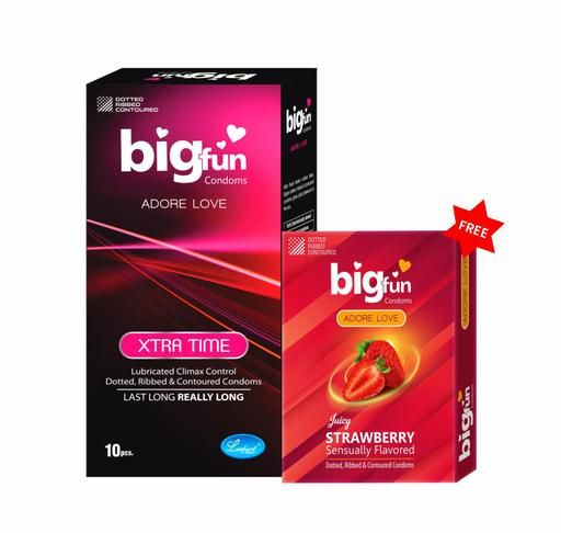 Product Name: Bigfun Dotted, Ribbed, Countered and lubricated Condoms for Men -Extra Time Count 10 + Free Strawberry Flavor Count 3 - Total 13 Condoms