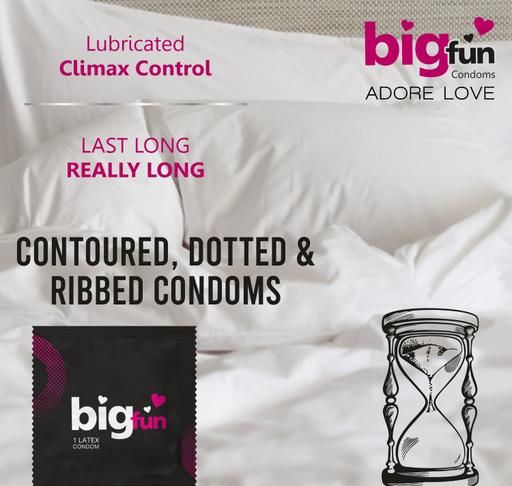 Bigfun Condoms are premium contoured condoms designed to provide comfort, sensitivity & security so as to give your passionate sessions an extra stimulation through its ribbed & dotted portion. Bigfun dotted condoms are lubricated with biocompatible, skin friendly & safe lubricant & provide flavors which offers unmatched oral satisfaction.