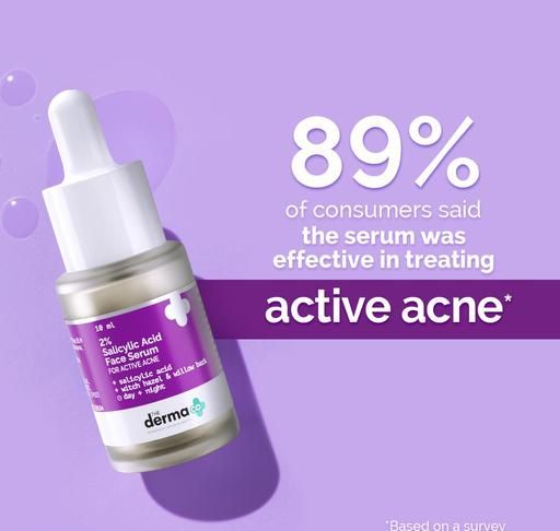 Let acne be a short story! The Derma Co. 2% Salicylic Acid Serum is a multitasking formulation that treats acne, unclogs pores, and prevents skin damage. Introduce this skincare BFF to your regimen and you're sorted! The combination of 2% Salicylic Acid & Witch Hazel exfoliates the pores' walls to prevent the appearance of whiteheads and blackheads. With no more sebum in the pores, it eventually stops the formation of acne. When pimples say hi, give them the best farewell with this super serum! Bring on the best of the filter-free YOU with your spotless, unique & youthful skin.