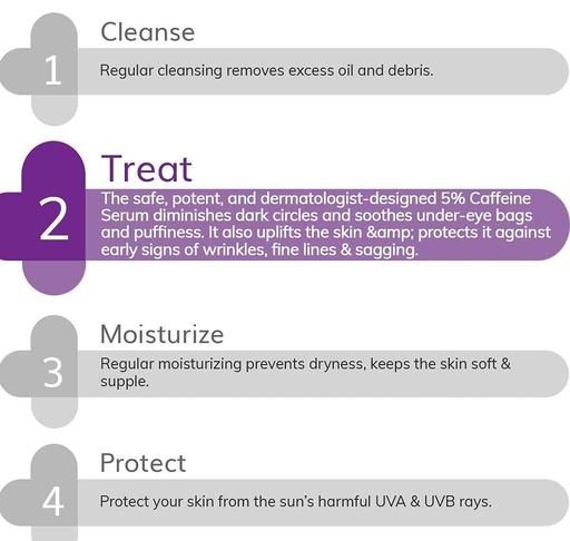 Dermatologically tested, 5% Caffeine Serum is a safe solution to smoothen and tighten skin texture, diminish dark circles, and depuff under-eye bags.