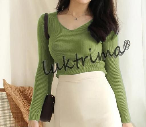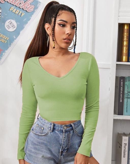 This pretty V neck crop full sleeve top for women comfortable to wear and looks good with any color of jeans latest women's top and top tunic, tees for women new top for girls made of rib knitted fabric.