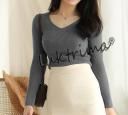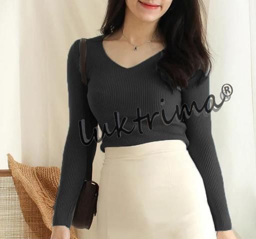 This pretty V neck crop full sleeve top for women comfortable to wear and looks good with any color of jeans latest women's top and top tunic, tees for women new top for girls made of rib knitted fabric.