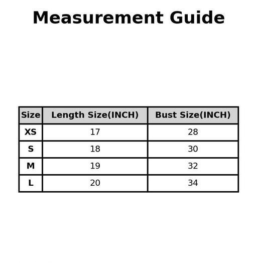 XS (Bust Size: 28 in, Length Size: 17 in)
