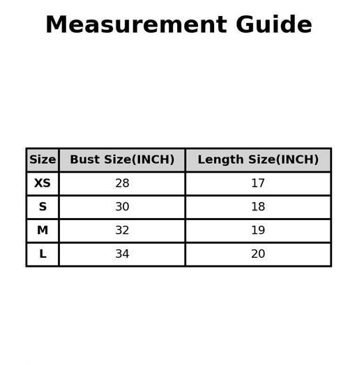 XS (Bust Size: 28 in, Length Size: 17 in)