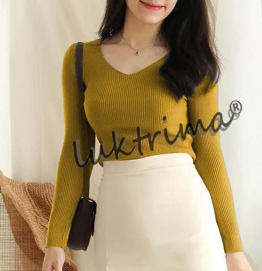 This pretty V neck crop full sleeve top for women comfortable to wear and looks good with any color of jeans latest women's top and top tunic, tees for women new top for girls made of rib knitted fabric.