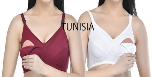 TUNISIA Women's Cotton Non Padded Non Wired Feeding Bra/Nursing Bra/Maternity Bra.feeding bra is a luxuriously comfortable, seamless experience for the lactating moms. Smooth & Baby soft fabric molds to your changing shape so that you can wear it while pregnant or nursing with comfort. It is easy to open and close. In addition, the full drop away cup design allows for maximum skin-to-skin contact. non-padded, wirefree bra promises amazing support and gentle hold. The nursing clasps make feeding easier and this pregnancy friendly fabric with an antimicrobial finish keeps rashes and infections away. The high coverage hold ensures you are fully supported and held with a no-spill promises. It features front buckles for easy and safe breast-feeding and the pure cotton material makes it hygienic option during sensitive times.
