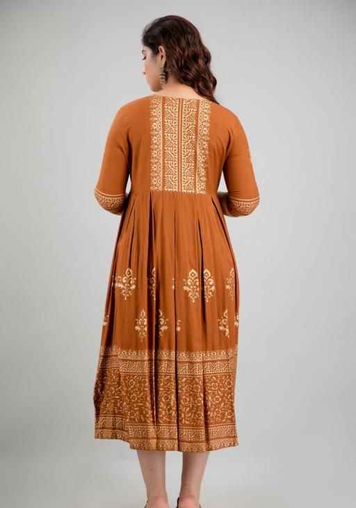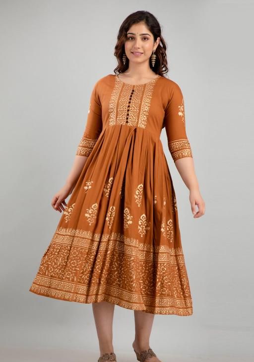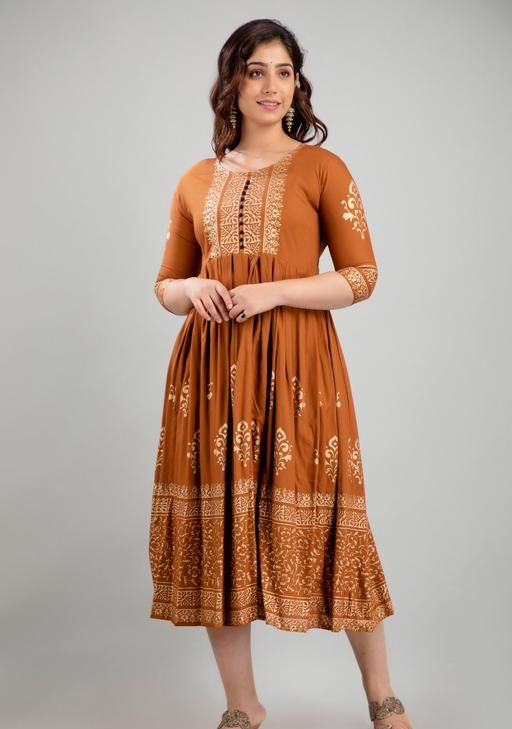 A perfect choice for everyday wear, this printed kurta features three-quarter sleeves, a round neck, and a flared hemline. Team it up with a pair of jeans or straight pants or palazzos along with some minimal accessories and sandals to complete your casual ethnic ensemble. This type of prints have always been popular in Indian ethnic wear. This printed rayon anarkali can make you look unique and stand out in a crowd. We also providing you many styling options in this catalog and these kurtis can be worn anywhere. When it comes to Anarkali Kurtis, checkered printed designs are extremely popular as well. Ethnic prints like block prints, paisley florals, and Kalamkari are being adored these days. We come in a comprehensive range of shades and colours. These Anarkali Kurtis are made in light flowy fabrics which is soft.
