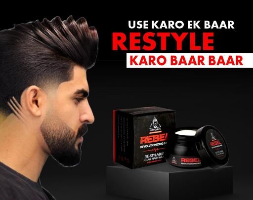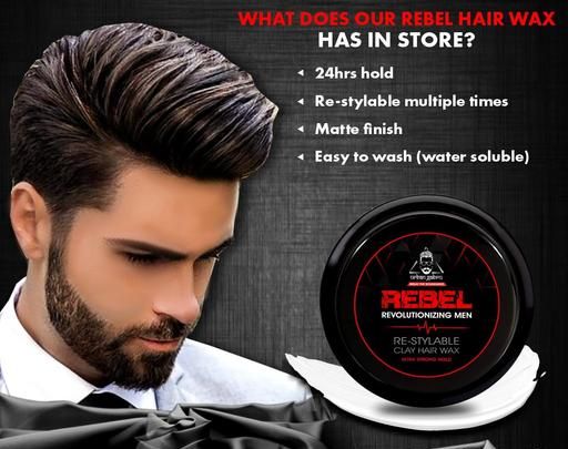 Name: Rebel Hair Styling Clay Wax for Men | Strong Hold | Matte Finish | 100 Times Re-Styleable with Keratin (Safe & Natural) - 85 gm | Adds Texture