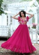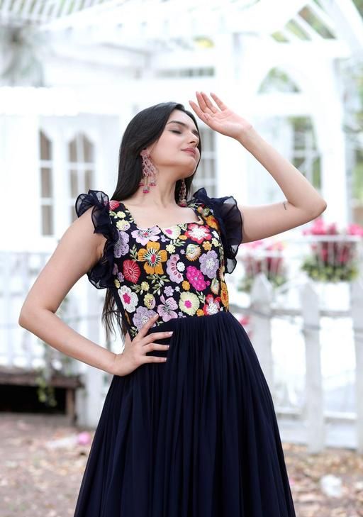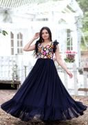 Tilton Women's Blue Faux Georgette With Sequins Multithreaded Embroidered Gown