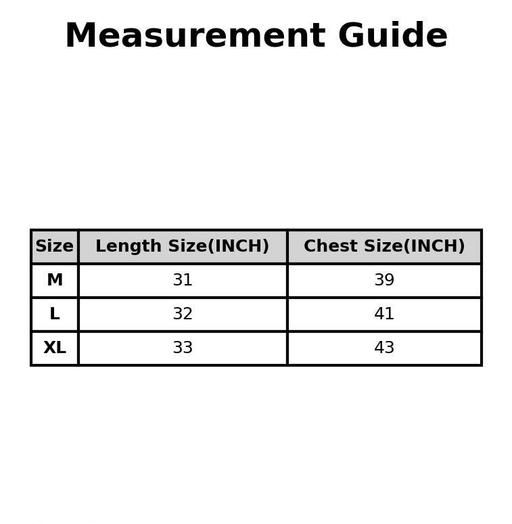 XL (Chest Size: 43 in, Length Size: 33 in)