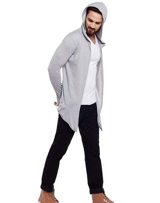 Name: GLAMPANDA Men Grey Hooded Thumbhole Open Long Cardigan Shrug Men's Stylish Solid Cotton Square Neck Collar Full Sleeves Cardigan/Shrug