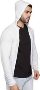 GLAMPANDA Men Grey Hooded Thumbhole Open Long Cardigan Shrug Men's Stylish Solid Cotton Square Neck Collar Full Sleeves Cardigan/Shrug