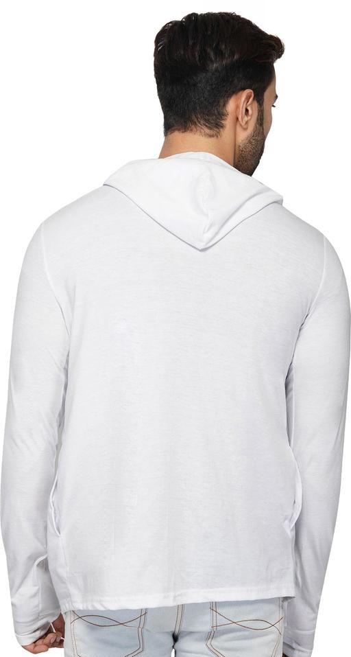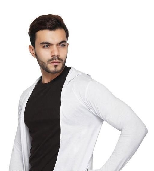 Name: GLAMPANDA Men White Hooded Thumbhole Open Long Cardigan Shrug Men's Stylish Solid Cotton Square Neck Collar Full Sleeves Cardigan/Shrug