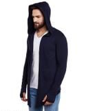 GLAMPANDA Men White Hooded Thumbhole Open Long Cardigan Shrug Men's Stylish Solid Cotton Square Neck Collar Full Sleeves Cardigan/Shrug