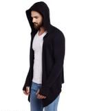 GLAMPANDA Men Mehroon Hooded Thumbhole Open Long Cardigan Shrug Men's Stylish Solid Cotton Square Neck Collar Full Sleeves Cardigan/Shrug