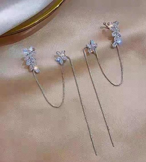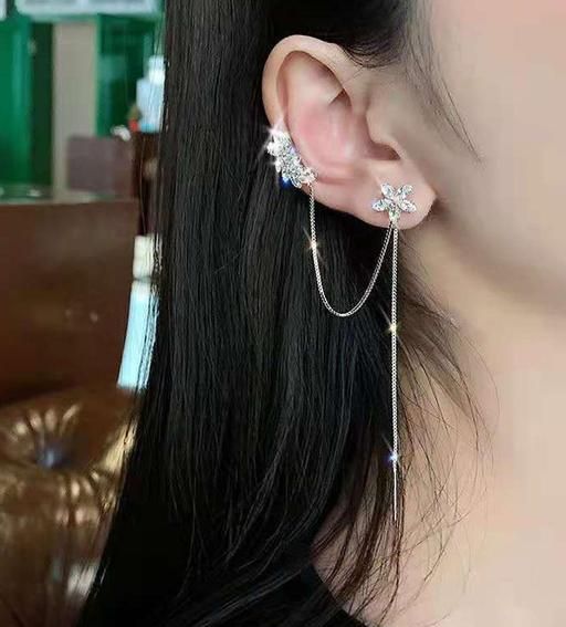 Korean Chain Tassel Threader Flower Ear Cuff Earrings For Women/Girls