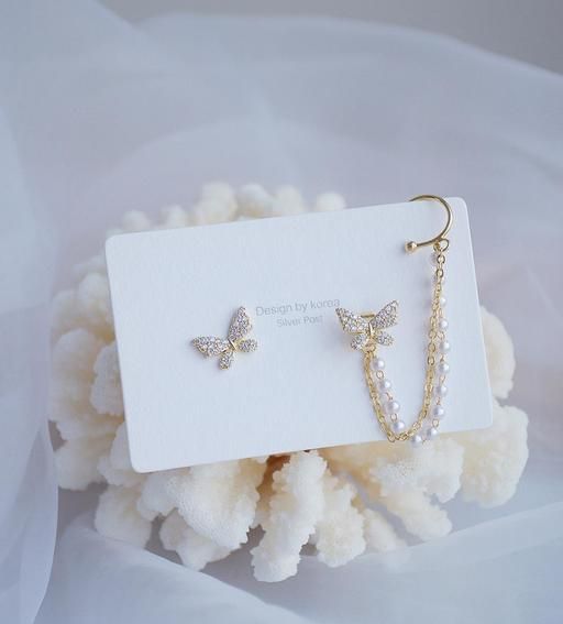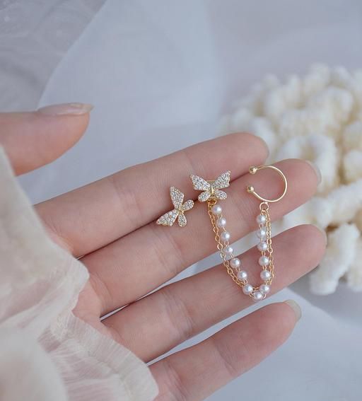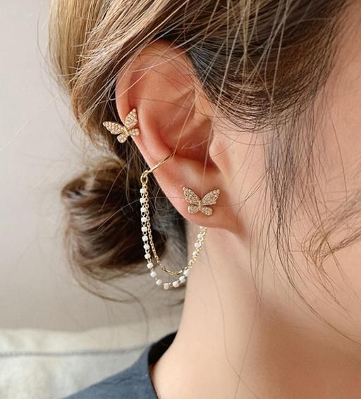 Name: Korean Pearl Chain Ear Cuff Butterfly Stud Earrings For Women/Girls