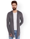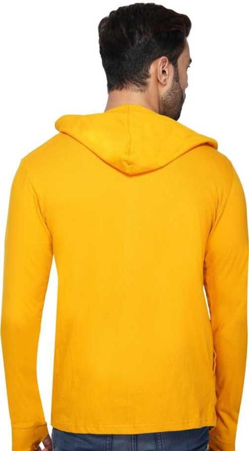 Trendolo Men Mustard Hooded Thumbhole Open Long Cardigan Shrug Men's Stylish Solid Cotton Square Neck Collar Full Sleeves Cardigan/Shrug