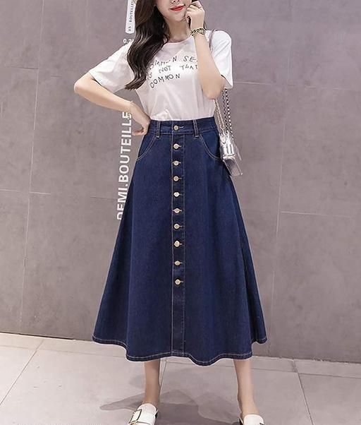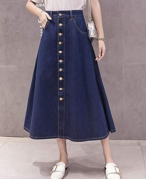 Name: Stylish Navy Blue A-Line Maxi Denim Skirt for Women | High Waist Buttoned Long Skirt with Flowy Fit 2000