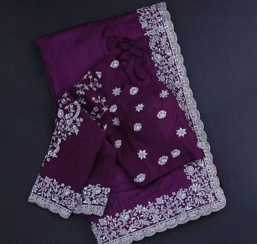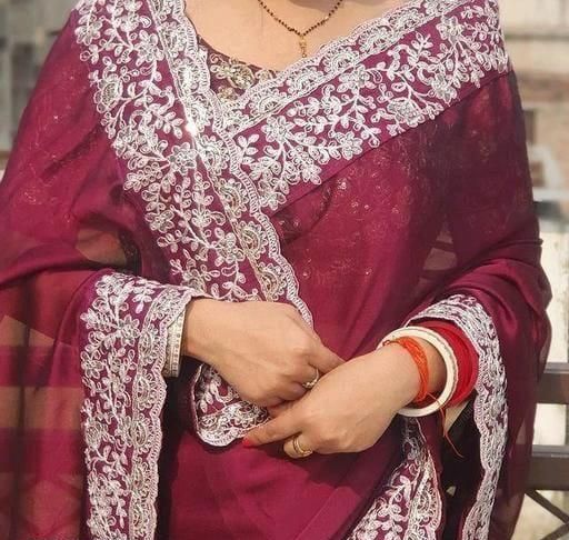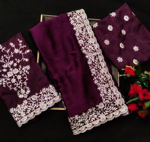 Georgette Embroidered Elegant Purple Color Sreee With Blouse || Saree For Women || Trending Saree For Women || Bollywood Stylish Fancy Party Wear Wedding Festive Bridal Sari/Saree For Women