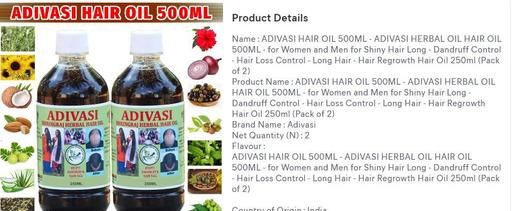 Product Name: ADIVASI HAIR OIL 500ML - ADIVASI HERBAL OIL HAIR OIL 500ML - for Women and Men for Shiny Hair Long - Dandruff Control - Hair Loss Control - Long Hair - Hair Regrowth Hair Oil 250ml (Pack of 2)