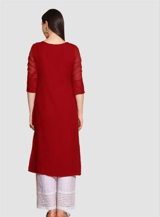 Arth World Women's Embroidered Georgette Straight Kurti