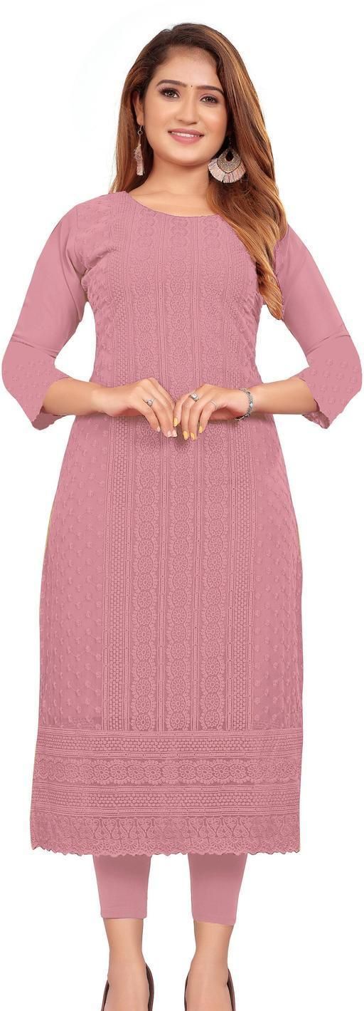 Name: Arth World Women's Embroidered Georgette Straight Kurti