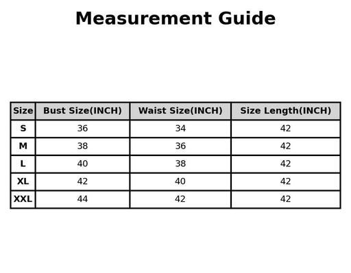 XL (Bust Size: 42 in, Size Length: 42 in)