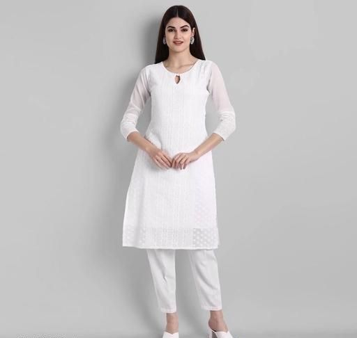 Name: Apaari Fab Women's Embroidered Georgette Straight Kurti