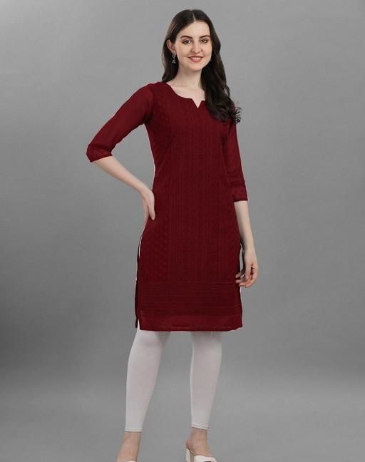 Name: Apaari Fab Women's Embroidered Georgette Straight Kurti