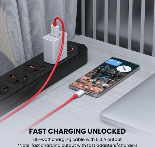 Name: Konnect Dash Pro 65W USB to Type C Charging Cable with 6Amp Output, 480 mbps Data Sync, 1M Length, Supports Fast Charger, Macbook, Laptops, Smartphones(Red) Brand: PORTRONICS Cable Length: 1 Mtr Cable Speed: 480 Mbps Color: Red Compatibility: All Smart Phones Material: Plastic Net Quantity (N): 1 Power: 5 Amp Type: Type C Warranty Period: 6 Months Warranty Type: On Site Add a dash of spritely charging to your life with Portronics Konnect Dash Pro. The USB-A to Type C cable has an output of 65 watts. The charging cable gives a current output of 6 Ampere and supports android smartphones and tablets. It also supports charging laptops with type C ports, MacBooks and iPad. The 6-ampere cable is built with copper, aluminium and TPE materials. The USB-A to type C charging cable ensures stable charging by keeping issues like overheating and over voltage at bay. It supports fast charging adapters that allows you save time on charging so you can do better things than waiting. Further you can also use the cable to transfer data with a speed of 480 mbps. Add a dash of powerful, quick and stable charging with Portronics Konnect Dash Pro cable. Country of Origin: China