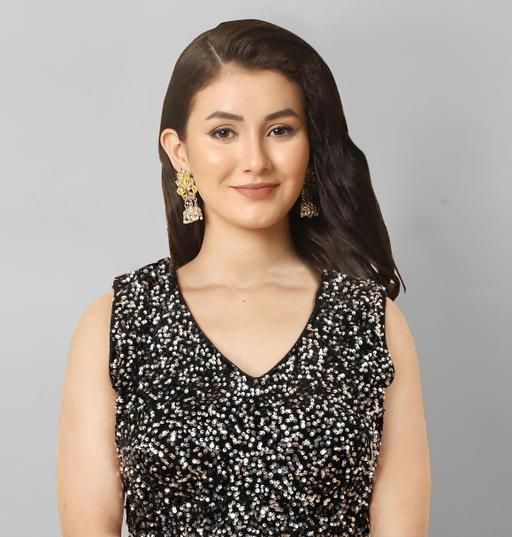 • Blouse Fabric: Sequin-embellished net (unstitched )