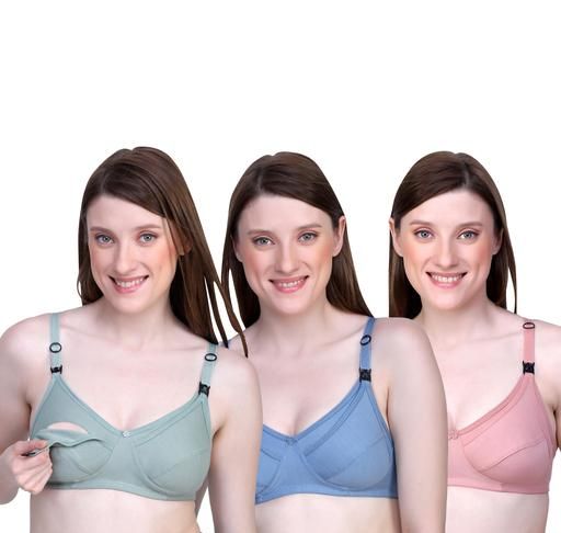 MAYA BEAUTY Women's Cotton Non-PaddedMaternity Breastfeeding Mother Bra Combo Of 3Pcs
