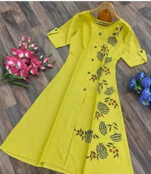 Women's Printed Cotton Slub Aline Kurti || Fancy Women's Printed Cotton Blend Flared Kurta (Pack Of 1)