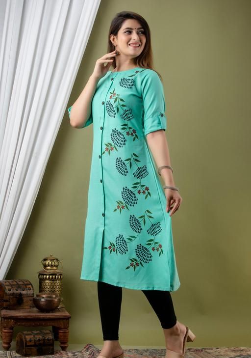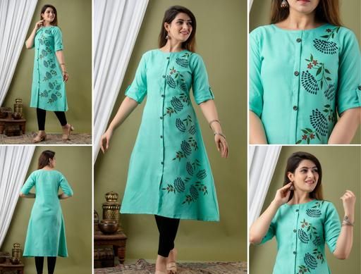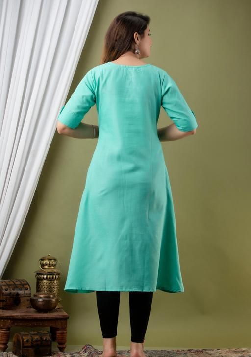 Women's Printed Cotton Slub Aline Kurti || Fancy Women's Printed Cotton Blend Flared Kurta (Pack Of 1)