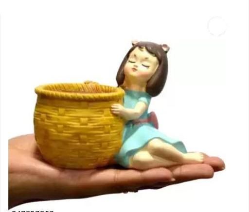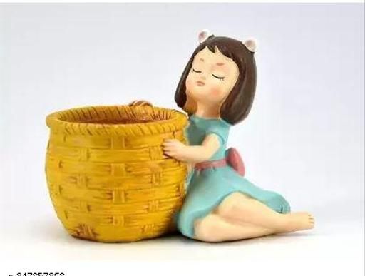 Basket Girl Design Resin Pots Unique & Trendy Design Return Gifts Succulent Pots Polyresin Pot/Planter Home Decor Imported WITHOUT Plant (H - 3.7 Inch, W - 5.1 Inch ) Plant Container Set Resin mini flower pots are great for home decor and to hold mini succulents and cacti or any other small plants. Hand-painted distinctive, funny ornament for buyers who like gardening. Attractive little planter makes your desk unique. These colorful planters also make an excellent gift. There is a drainage hole and stopper on the bottom. These attractive planters are perfect to decorate your balcony, windowsill, dinning table, office desk and room adding fun to life. They are used as mini pots for succulents, flowers pots, bonsai pots, cactus plant pots, air plant pots, mini style fake flower pots, even as pen, flower and candy container or tabletop/desktop ornaments etc.