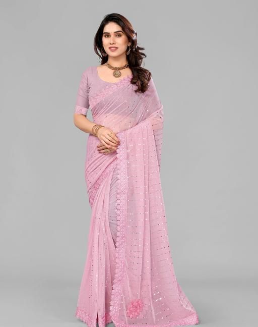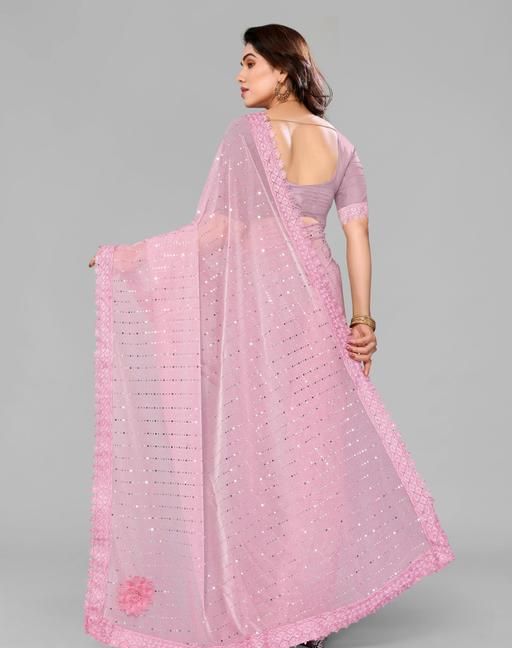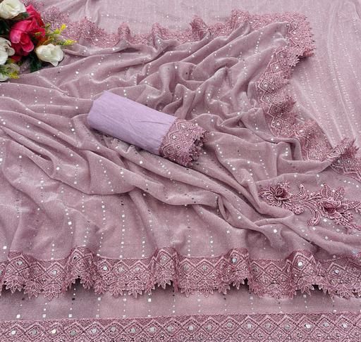 Name: SHIMMER SAREE WITH MIRROR WORK AND CHEMICAL LACE AND DIMOND HAND WORK