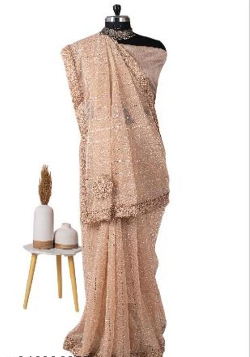 Name: SHIMMER SAREE WITH MIRROR WORK AND CHEMICAL LACE AND DIMOND HAND WORK