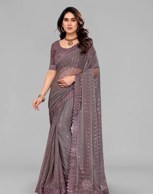 Name: SHIMMER SAREE WITH MIRROR WORK AND CHEMICAL LACE AND DIMOND HAND WORK