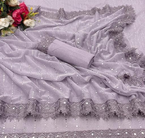 Name: SHIMMER SAREE WITH MIRROR WORK AND CHEMICAL LACE AND DIMOND HAND WORK
