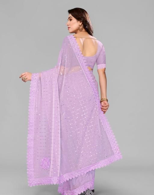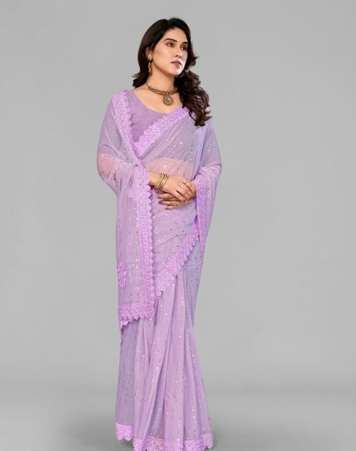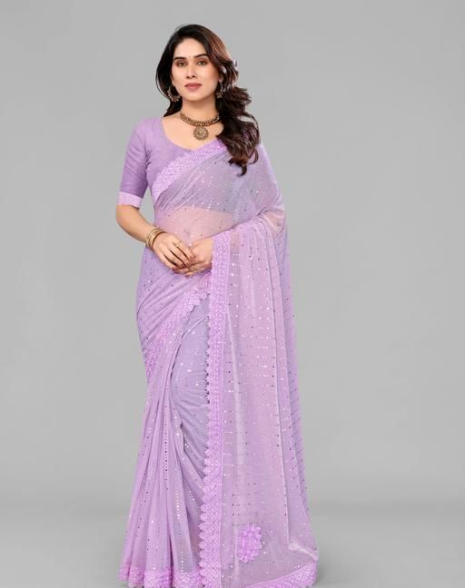 SHIMMER SAREE WITH MIRROR WORK AND CHEMICAL LACE AND DIMOND HAND WORK
