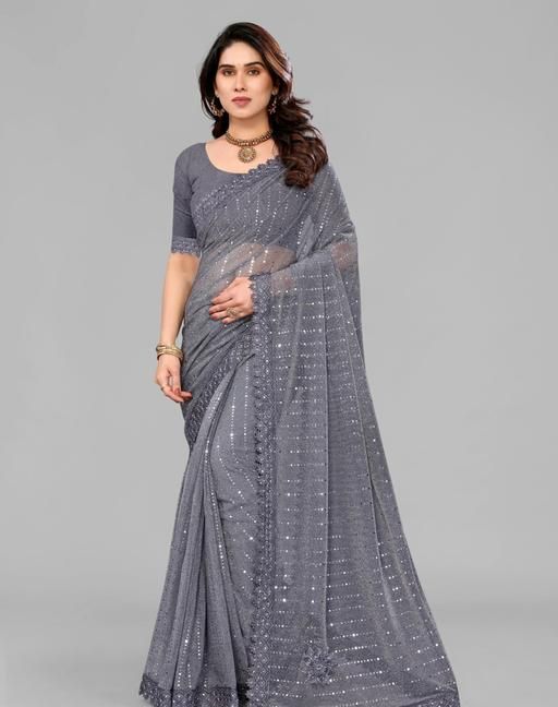 Name: SHIMMER SAREE WITH MIRROR WORK AND CHEMICAL LACE AND DIMOND HAND WORK