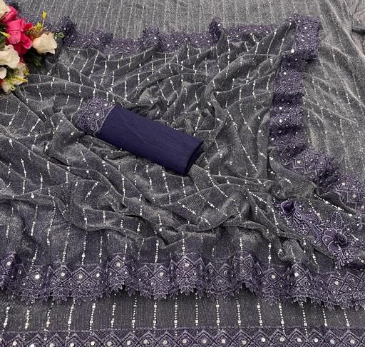 SHIMMER SAREE WITH MIRROR WORK AND CHEMICAL LACE AND DIMOND HAND WORK