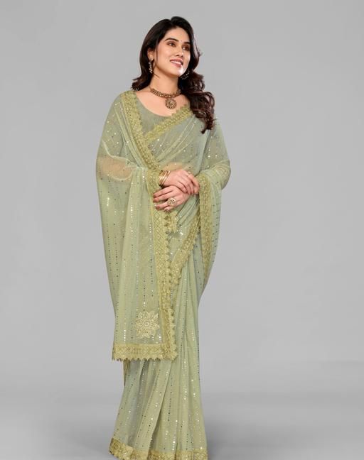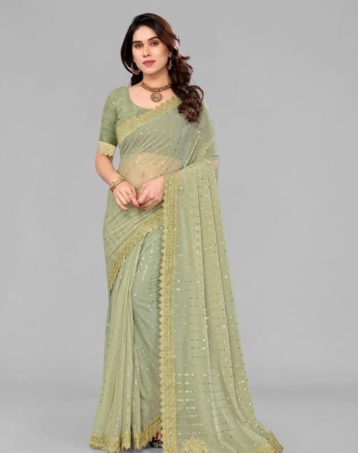 SHIMMER SAREE WITH MIRROR WORK AND CHEMICAL LACE AND DIMOND HAND WORK