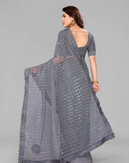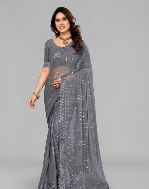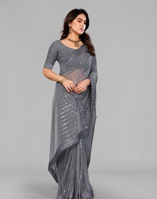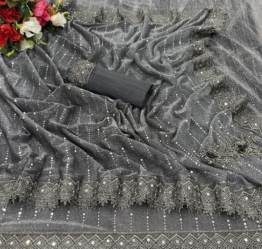 Name: SHIMMER SAREE WITH MIRROR WORK AND CHEMICAL LACE AND DIMOND HAND WORK