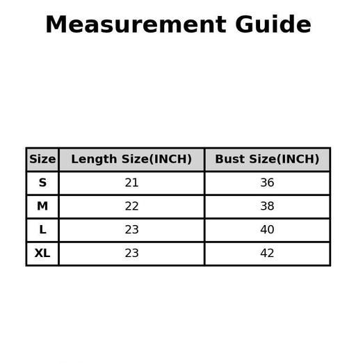 XL (Bust Size: 42 in, Length Size: 23 in)