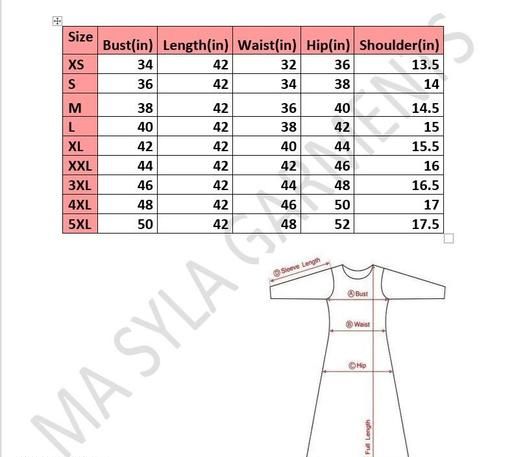 5XL (Bust Size: 50 in, Size Length: 43 in)